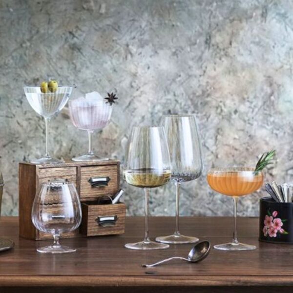 Luigi Bormioli Optica coupeglas är designade för dem som söker ett stilfullt och hållbart glas för champagne, mousserande viner och cocktails. Serien har en distinkt veckad design som skapar ett vackert ljusspel i glaset. Tillverkade av ultraklart, blyfritt kristallglas, vilket säkerställer hög hållbarhet och bestående glans. Glasen är diskmaskinssäkra och har en 25-års garanti som täcker kant- eller bottenflisor samt missfärgning eller grå dimma från diskning. Med en höjd på 14,8 cm och en diameter på 10,7 cm är dessa glas perfekta både för speciella tillfällen och vardagsbruk.