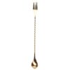 Det tvinnade skaftet underlättar omrörning av cocktails, medan gaffeln kan användas för att dekorera drinkar med cocktailkörsbär eller andra garneringar.